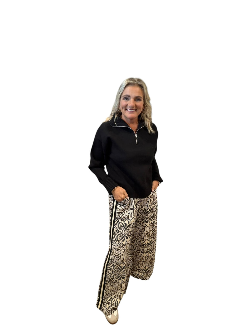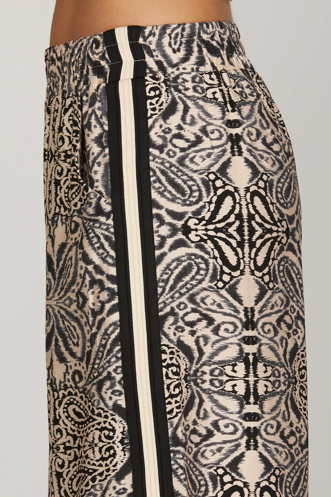 Step out in style with these wide-leg woven print pants designed for ultimate comfort and bold fashion. The elastic waistband ensures a perfect fit, while the contrasting side tape adds a sporty, contemporary edge. Complete with handy pockets, these pants effortlessly blend practicality with a cool, on-trend vibe.