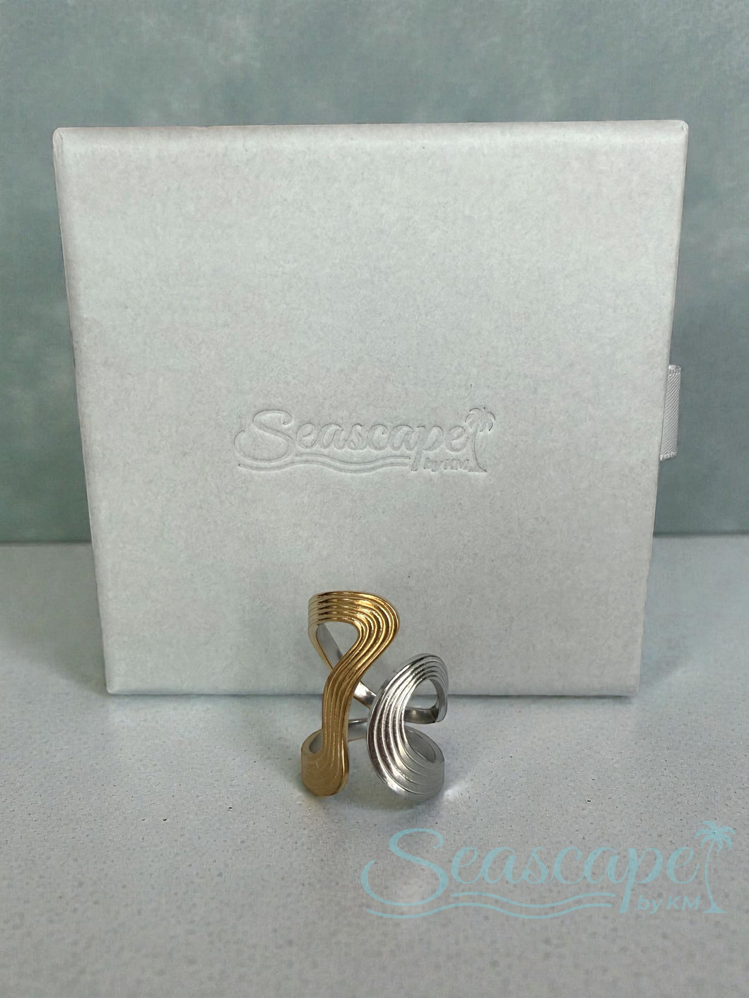 Our Going Places ring features a playful blend of gold and silver, it's the ultimate chameleon piece that complements any metal in your jewelry collection. The flexible design fits comfortably on any finger, making it perfect for layering or standing alone. Built to handle whatever life throws your way, this waterproof wonder resists tarnish and maintains its luster through workouts, beach days, and everything in between. Fun, functional, and endlessly versatile.