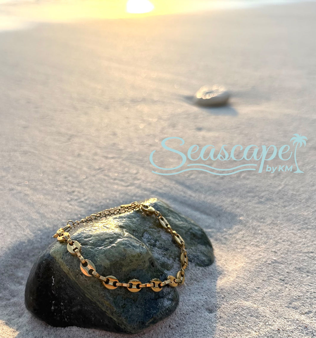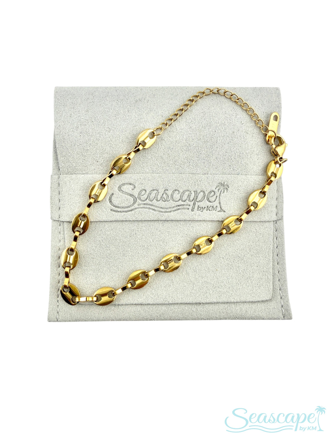 Dive into elegance with the Seascape Mariner Chain Bracelet—a designer-inspired bracelet that captures the essence of you. Crafted from premium stainless steel with a luxe gold finish, this bracelet features a striking mariner chain that's both timeless and on-trend. Perfect for layering or wearing solo, it's durable enough for everyday wear yet sophisticated enough to elevate any outfit. Make waves with a piece that's as adventurous as you are.