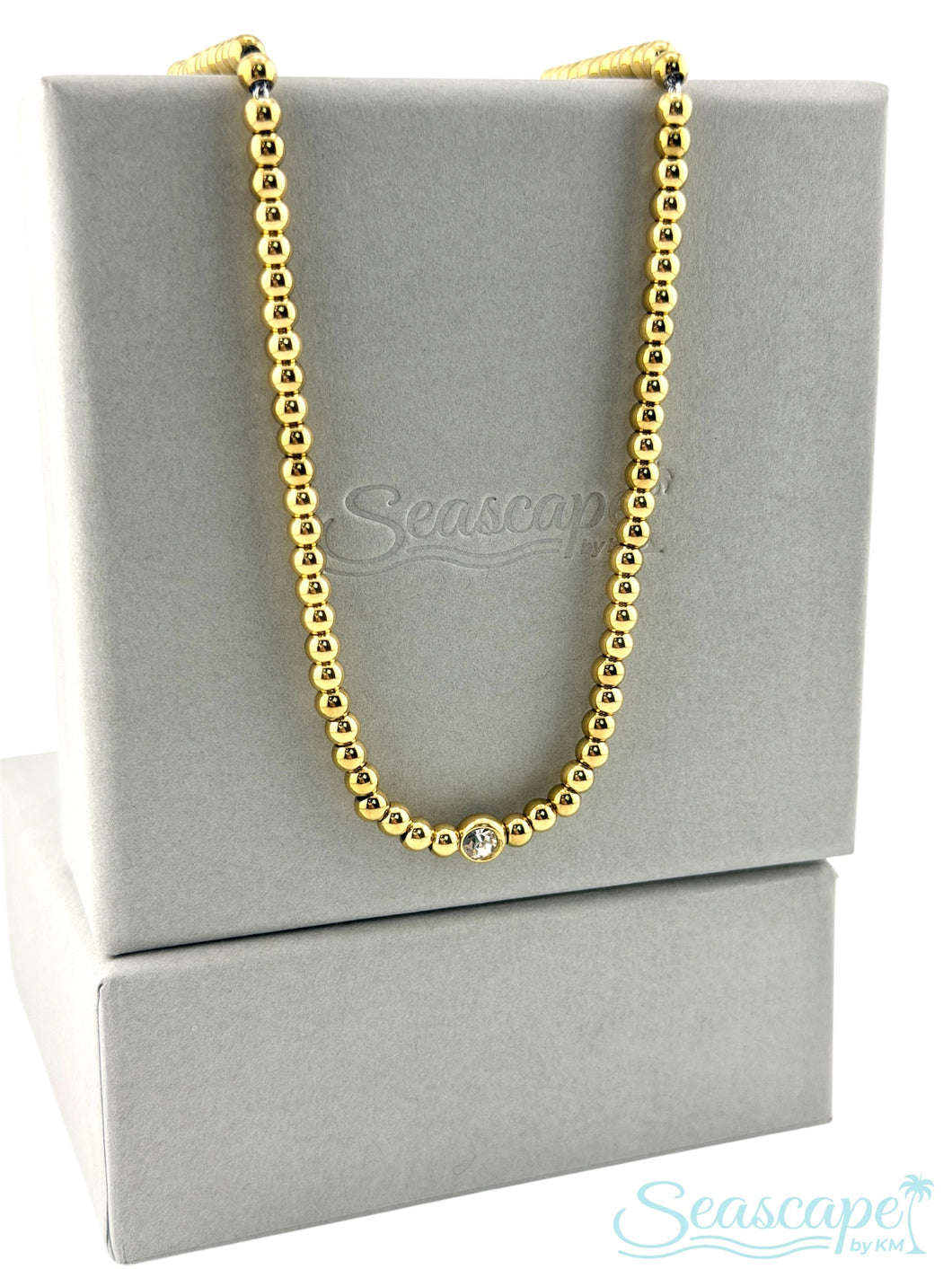 Delicate chain necklace designed for effortless layering. Features a petite beaded strand with a sparkling cubic zirconia centerpiece that catches the light beautifully. Adjustable length from 14" to 16" lets you customize the fit to your style. Perfect for mixing and matching with other pieces or wearing solo for understated elegance.