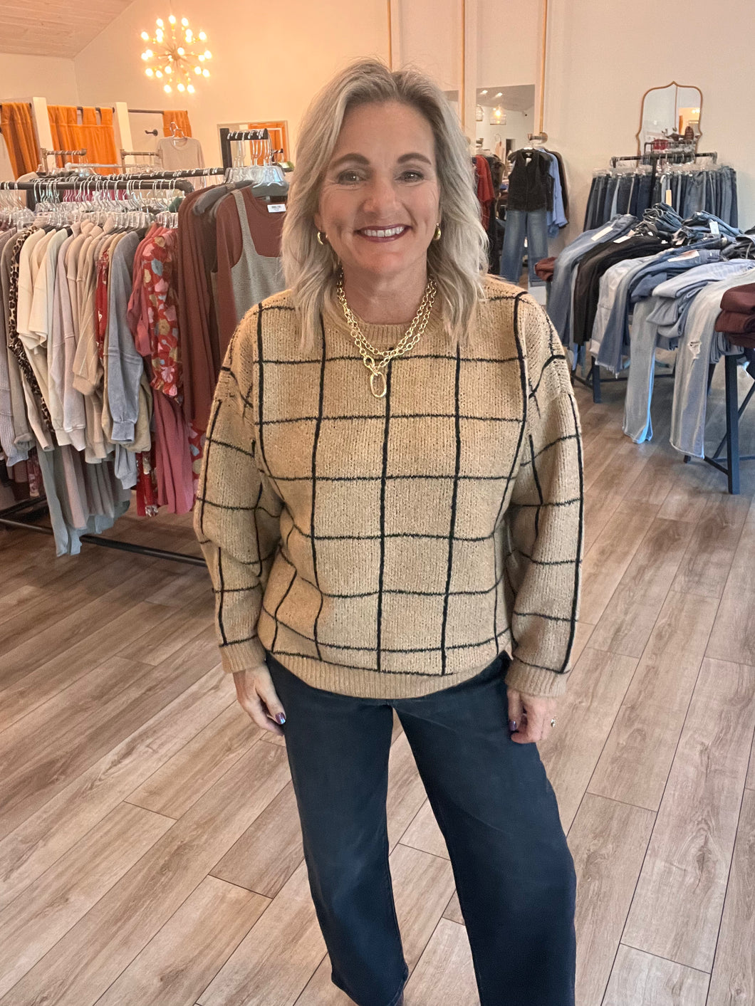 Stay warm and stylish this winter with our grid pattern sweater. Its unique design adds a touch of sophistication to any outfit, while its soft material ensures maximum comfort and coziness. A must-have addition to your winter wardrobe.