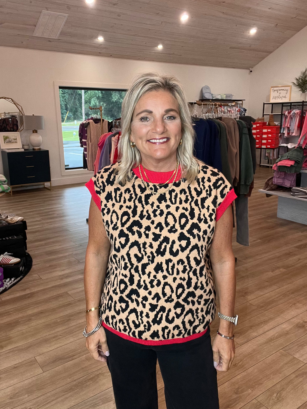 This leopard print sweater vest is a must-have for a bold and trendy look! Featuring a sleeveless design, soft knit fabric, and contrast ribbed trim, this versatile piece is perfect for layering over shirts, turtlenecks, or wearing on its own. Ideal for casual, streetwear, and chic outfit styles, this vest is a go-to for year-round fashion.