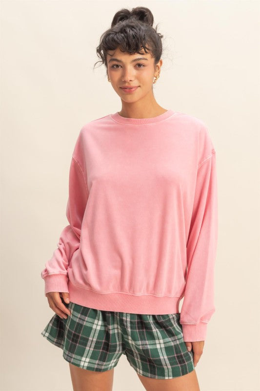 This relaxed-fit oversized sweatshirt features a mineral wash that adds a subtle vintage fade and soft, lived-in feel. A must-have item for casual wardrobes, it pairs effortlessly with jeans or leggings and layers perfectly for fall. Combines comfort with versatile style.