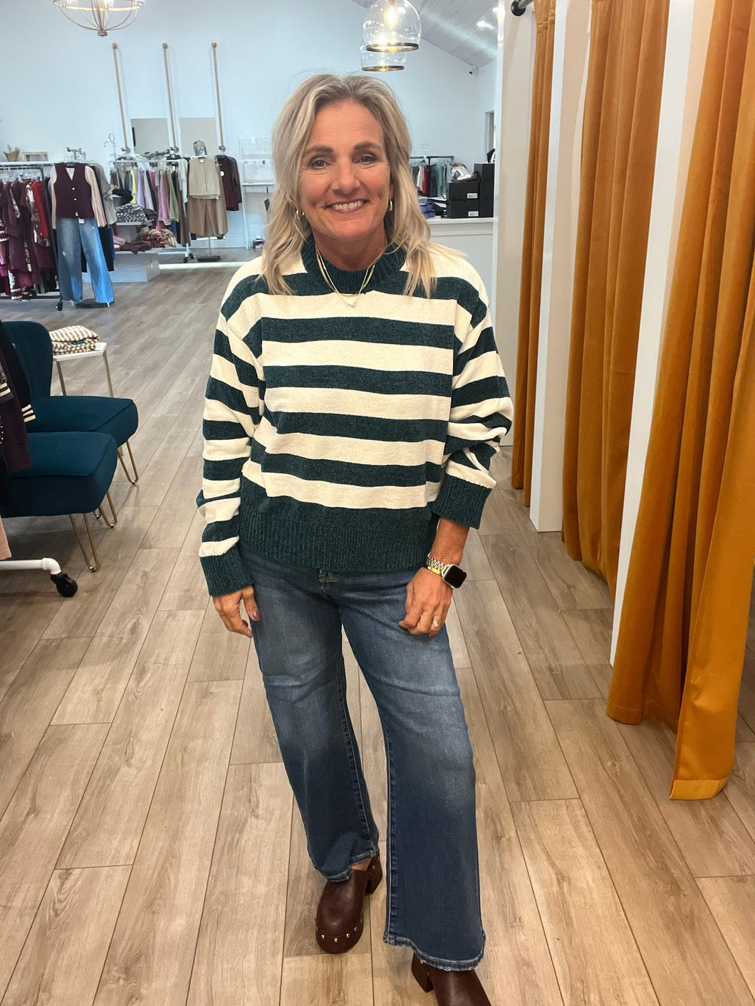 Designed with broad horizontal stripes and a cozy ribbed neckline, this piece offers exceptional comfort and a modern silhouette. The long sleeves end in ribbed cuffs, accenting the relaxed fit that makes it perfect for layering over collared shirts or under jackets. Ideal for weekend getaways or casual office days, this sweater pairs seamlessly with denim or tailored trousers, unlocking endless style possibilities.