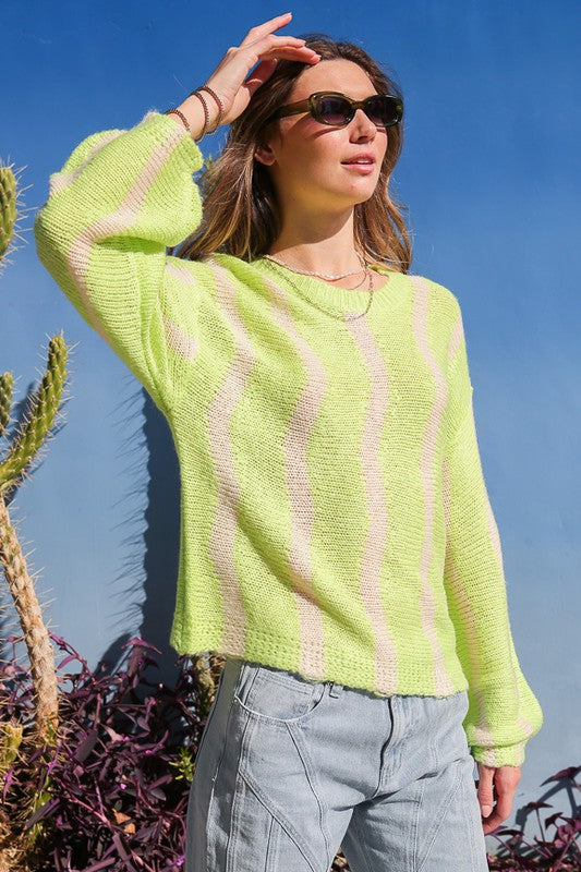 Introducing our Vertical Wave Stripe Oversized Sweater Top, a stylish and versatile addition to your wardrobe. This sweater top features a unique vertical wave stripe pattern, creating a bold and eye-catching design. The oversized fit adds a relaxed and comfortable feel, making it perfect for effortless layering or wearing on its own.