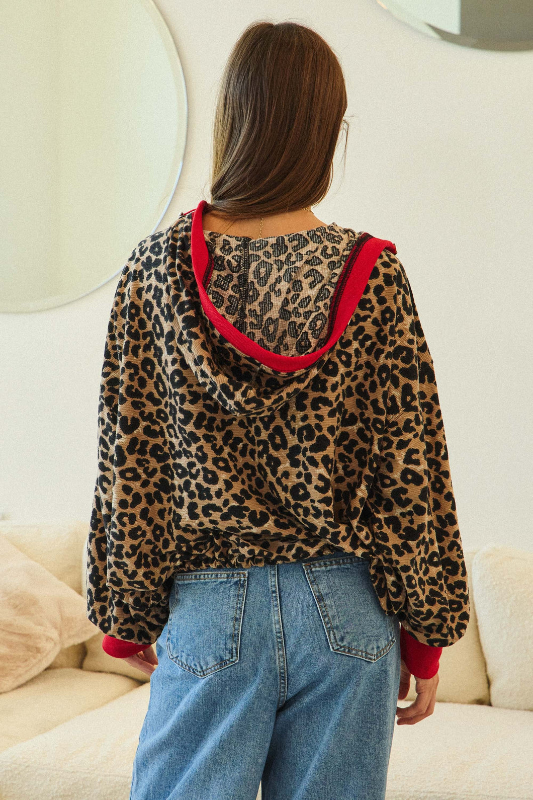 Discover the perfect blend of comfort and style with this leopard relaxed fit half zip top. The generous cut moves with you, while the convenient half zip lets you control your comfort level instantly. A built-in hood adds dimension and protection, making this your go-to piece for any occasion. Whether you're running errands, meeting friends, or relaxing at home, this versatile top delivers effortless sophistication. The classic leopard print never goes out of style—it's a wardrobe essential that pairs with everything and works harder than you'd expect.