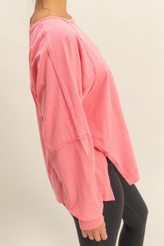 Stay effortlessly stylish in this oversized long sleeve top with side slits. The classic crew neckline adds a timeless touch, while the relaxed fit ensures all-day comfort. Perfect for layering or wearing on its own, this top brings easy, casual charm to your everyday wardrobe.