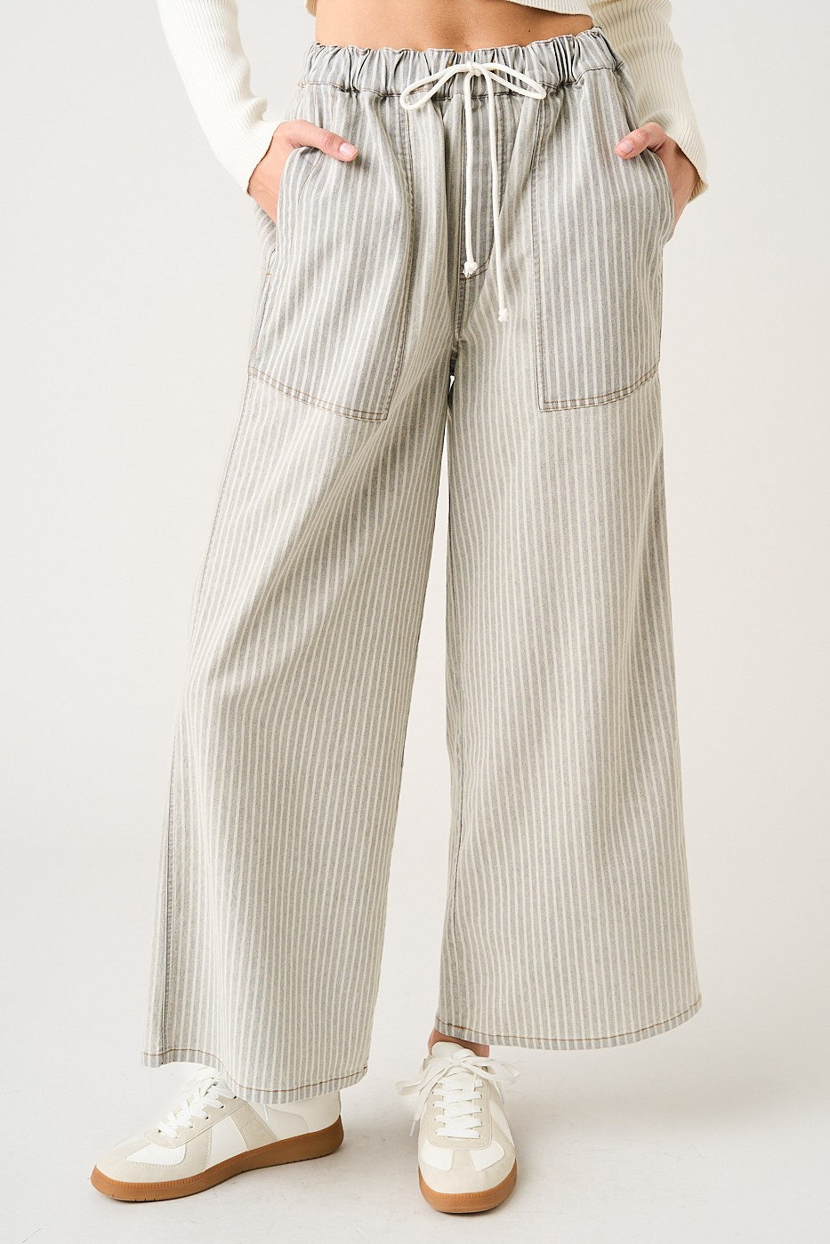 Introducing the Carley Pant—your new go-to for effortless style! These wide-leg beauties feature a fun striped knit fabric that brings personality to any outfit. The elastic waist with drawstring tie keeps you comfy all day long, while practical front and back pockets mean you've got room for all your essentials. Whether you're running errands or lounging at home, the Carley Pant delivers that perfect blend of cozy and chic. Dress them up or down—they're ready for whatever your day throws at you!