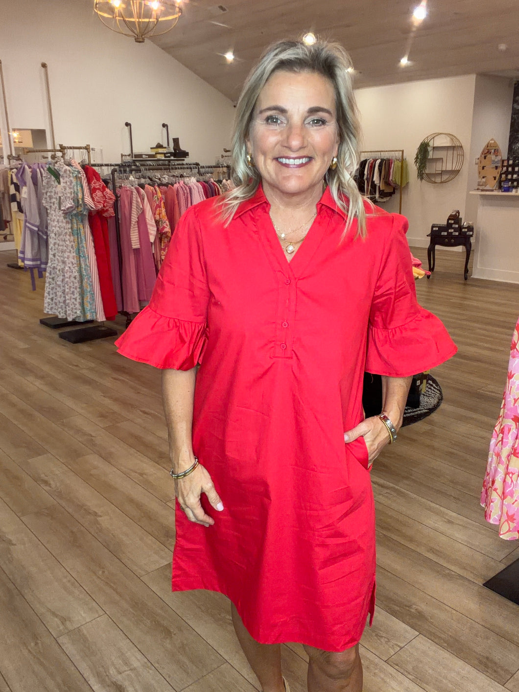 Elevate your wardrobe with this stunning red bell sleeve dress, a timeless piece that combines classic elegance with modern flair. Crafted for comfort and style, this dress features a flattering silhouette that works beautifully for various body types. The rich red hue is universally flattering and pairs effortlessly with your favorite accessories. Whether you're heading to brunch, a date night, or a seasonal celebration, this versatile dress delivers polished, put-together style every time you wear it.