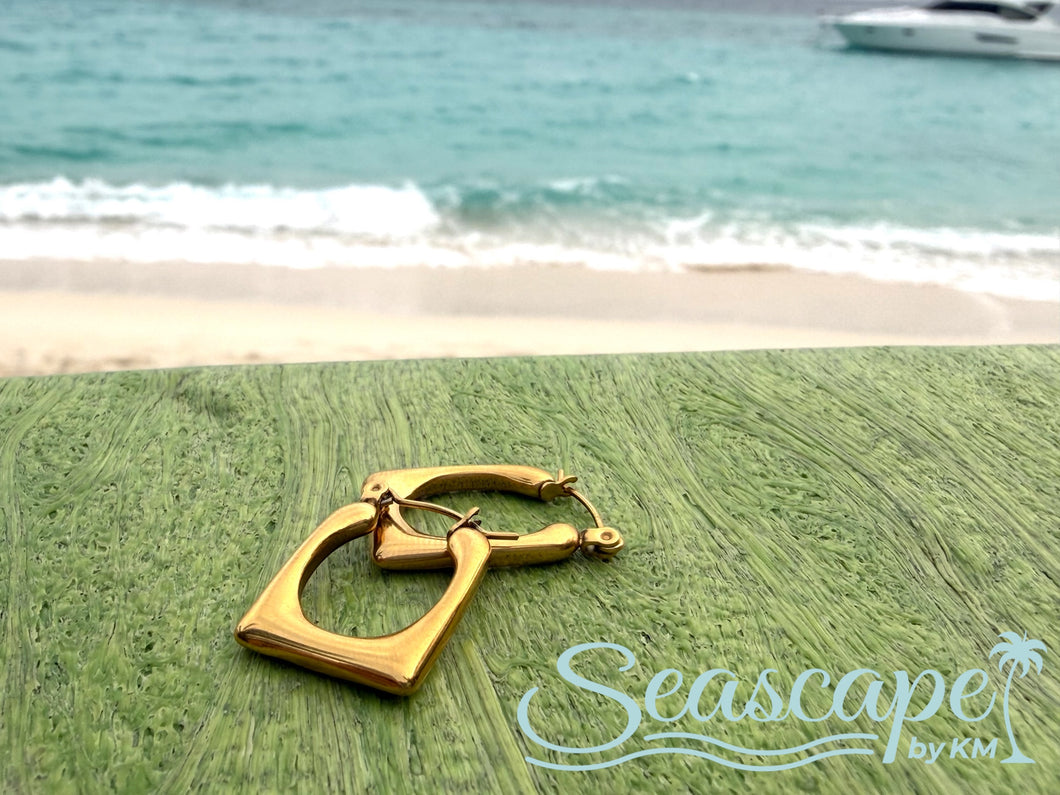 Add personality with these sleek square hoop earrings. Crafted from durable stainless steel with a warm gold finish, they offer the perfect blend of modern edge and timeless elegance. The geometric square shape adds contemporary flair while remaining versatile enough to pair with any outfit. Lightweight and hypoallergenic, these hoops are comfortable for all-day wear. A must-have staple for anyone who loves minimalist jewelry with personality.