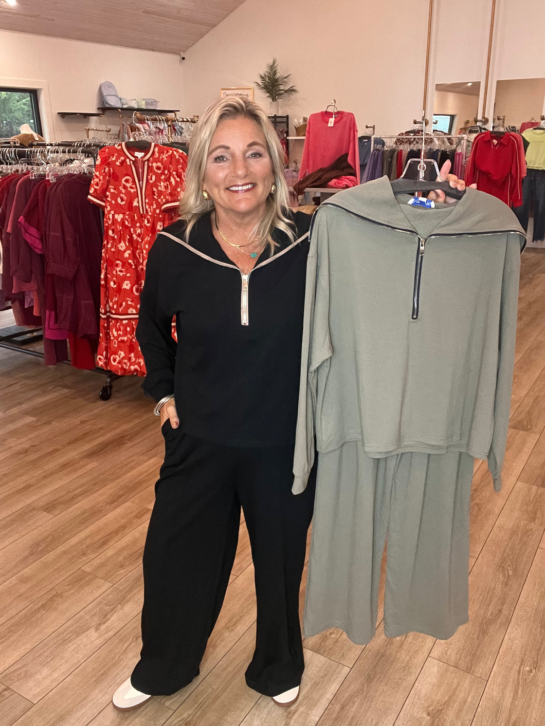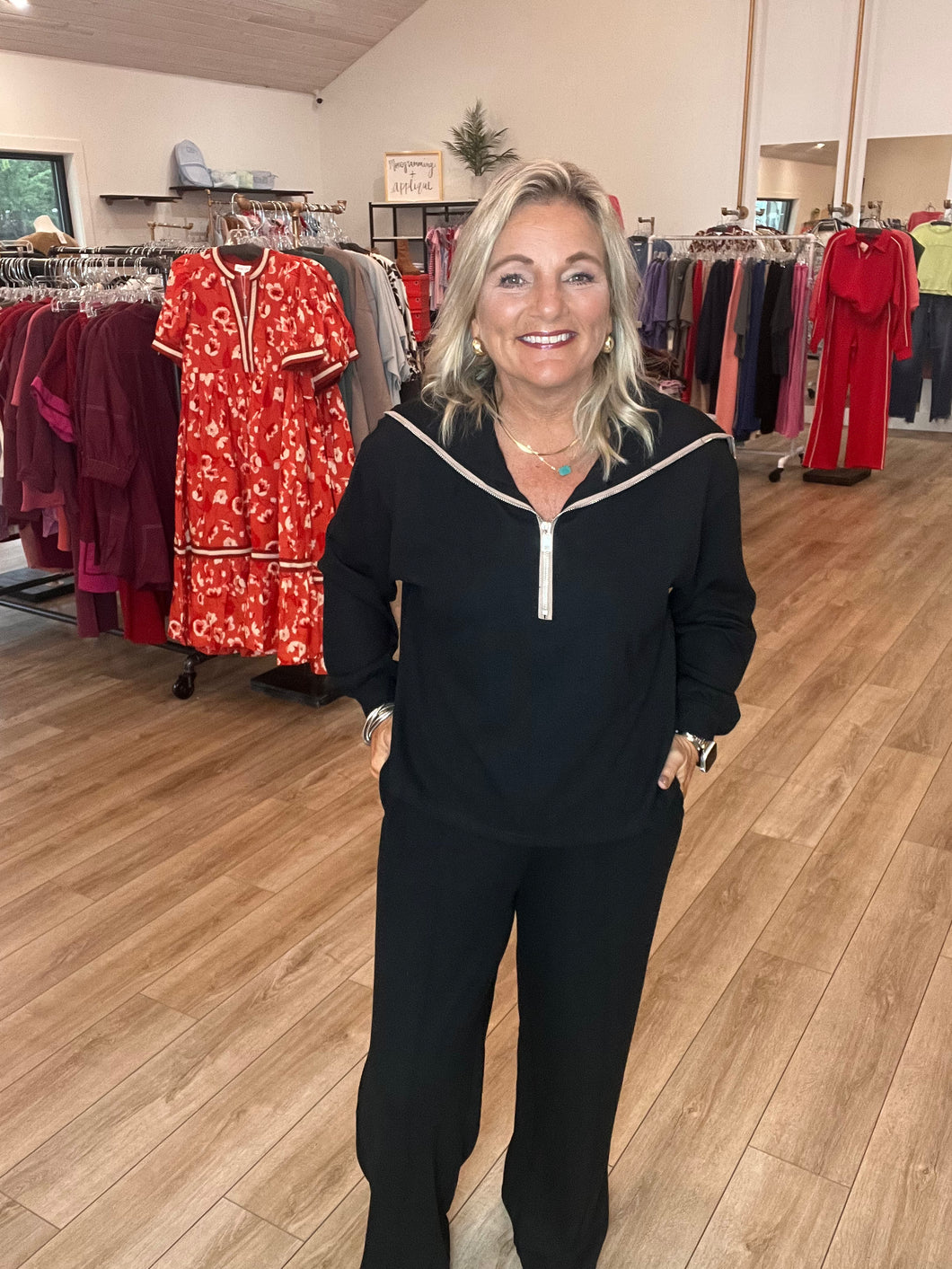 Embrace cozy charm this fall with our long sleeve half zip sailor collar knit pullover. Its soft knit fabric and unique collar add a playful twist while keeping you warm. Pair it effortlessly with wide leg knit pants featuring an elastic waistband and convenient pockets for a comfortable, stylish look perfect for crisp autumn days.
