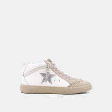 Introducing PAULINA - a contemporary interpretation of traditional basketball sneakers featuring a distinctive combination of colors and textures. This vintage-inspired high-top athletic shoe is constructed using faux leather with a lizard skin pattern and synthetic suede panels embellished with silver accents. It has a durable rubber sole that can withstand daily wear and tear. You can wear it with anything from skirts and track pants to formal attire.