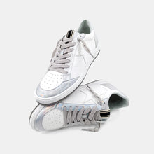 PAZ is one of our favorite must-have retro sneaker, with a low top upper body crafted in faux leather in eye-catching white and iridescent silver. These look amazing paired with shorts, cropped jeans and dresses. leather in contrasting white, silver and red. These look amazing paired with shorts, cropped jeans and dresses.