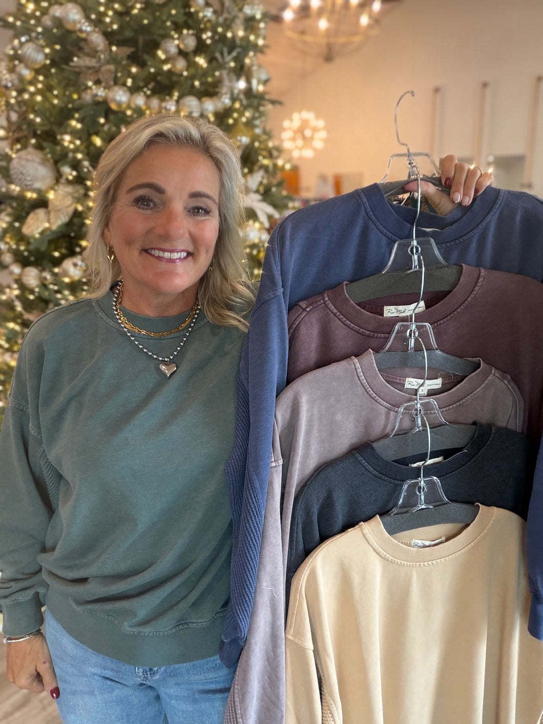A fresh take on a classic silhouette - this mineral-washed pullover blends soft French terry with textured waffle sleeves for a laid-back, lived-in feel. Relaxed in fit with mixed texture details throughout, it's effortlessly cool with just the right amount of contrast