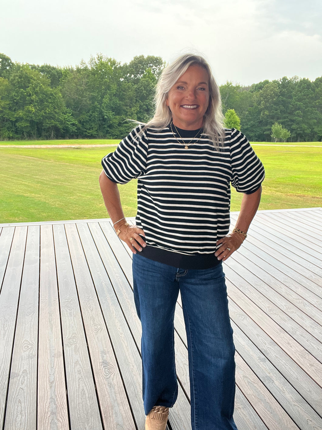 Introducing San Diego - the ultimate in comfort and style! This ROUND NECK PUFFY SLEEVE STRIPE CONTRAST CLOUDY KNIT TOP is perfect for any occasion, with a relaxed fit and playful puffy sleeves. The trendy stripe contrast adds a pop of personality to this cloud-inspired top.