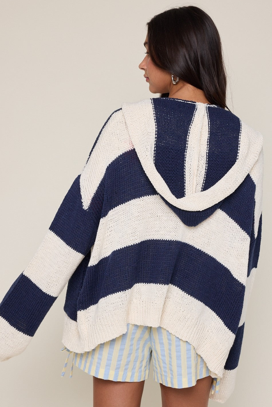 Wrap yourself in cozy charm with this delightful hooded cardigan that's equal parts practical and adorable. Featuring a soft knit construction in classic navy and cream colorways, it's the perfect layering piece for those days when you want to feel snug without sacrificing style. The hood adds an extra touch of whimsy and warmth, making it ideal for casual outings or relaxed evenings at home. Slip it on and instantly elevate your comfort game!