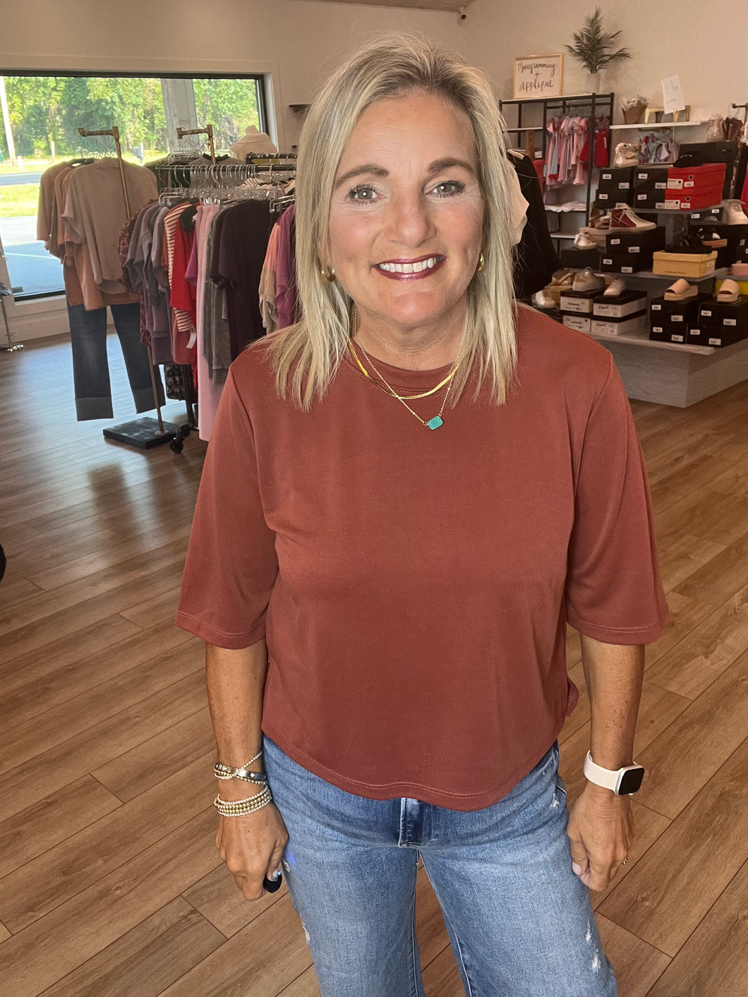 Experience ultimate comfort and style with our round neck 1/2 sleeve modal top. Made with soft and breathable fabric, this top is perfect for any occasion. Upgrade your wardrobe with this versatile piece that will keep you looking and feeling great all day long.