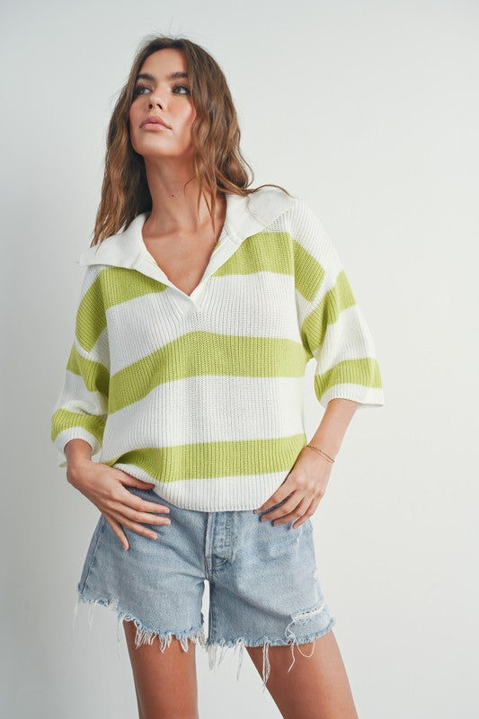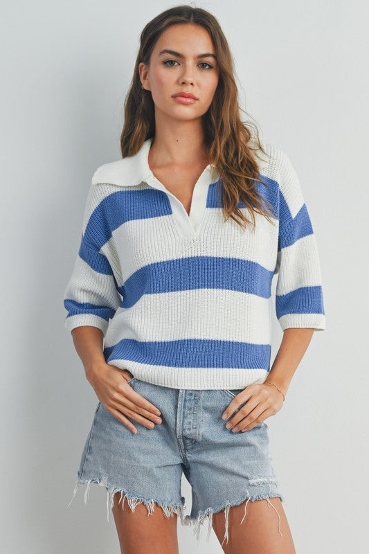 The St Maarten is a stylish and comfortable wardrobe essential. Made from high-quality, soft knit fabric, this sweater features a classic collared neckline and a timeless striped pattern. Its relaxed fit makes it perfect for casual outings or lounging at home. With its versatile design, you can effortlessly pair it with jeans for a casual look or dress it up with trousers for a more polished style.