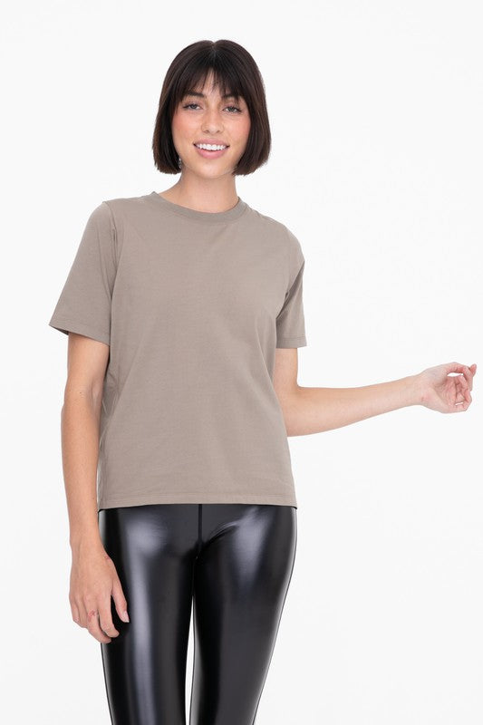 A tried and true classic. This simple tee is made with supima cotton that is pigment dyed for a rich color and features a boxy fit and ribbed neckline.
