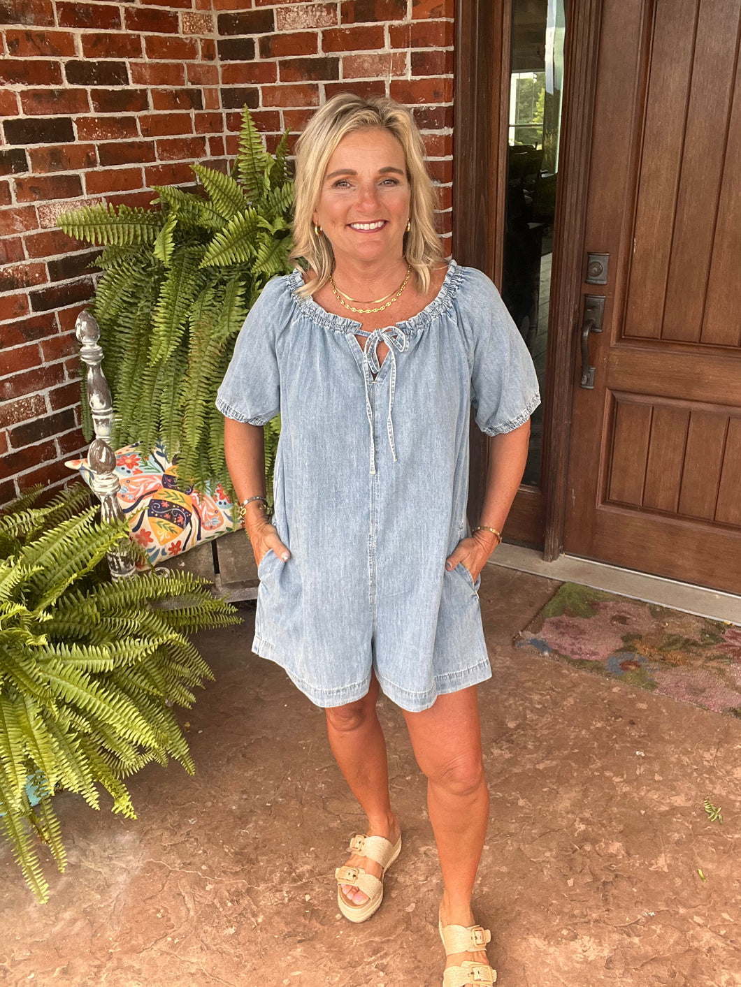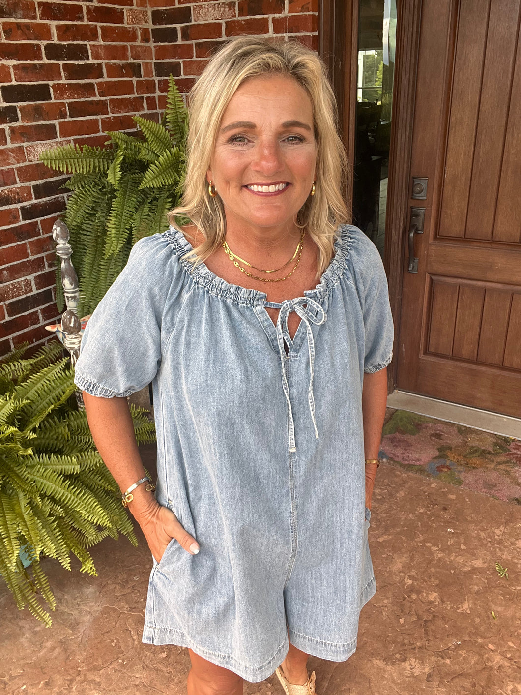 This adorable puff sleeve denim romper combines playful style with comfortable wear. Featuring charming puff sleeves and a classic denim fabric, it’s perfect for sunny days and casual outings. Easy to dress up or down, this romper adds a sweet, trendy touch to any wardrobe.